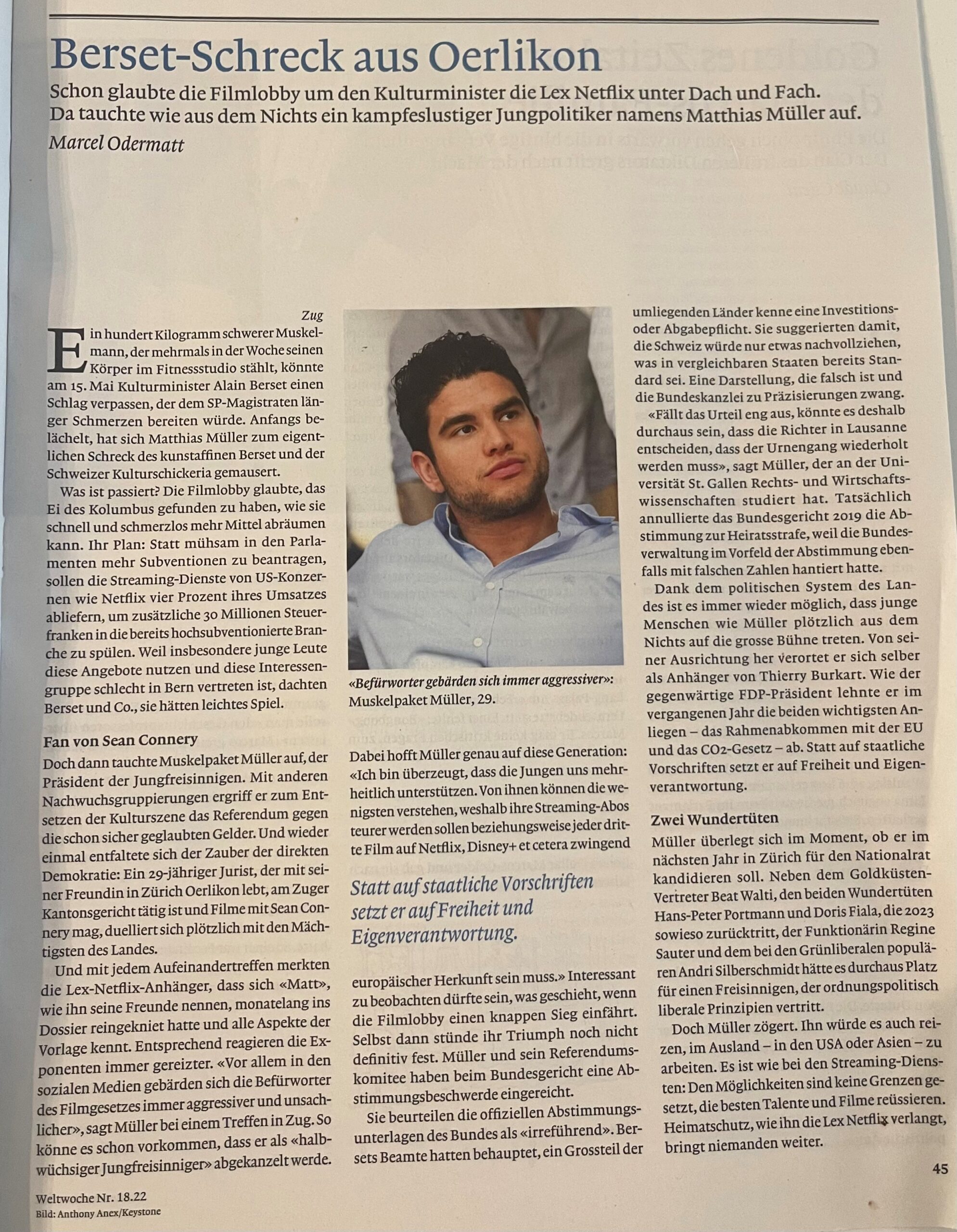 «Ich kenne Matthias seit vielen Jahren und weiss, dass er zukunftsgerichtete und innovative Ideen hat, um die Herausforderungen unserer Zeit anzugehen. Als Präsident der Jungfreisinnigen hat er gezeigt, dass er bereit ist, sich für die Anliegen junger Menschen einzusetzen und ihre Stimmen in der Politik zu vertreten. Ich bin überzeugt, dass er ein ausgezeichneter Nationalrat sein wird.»